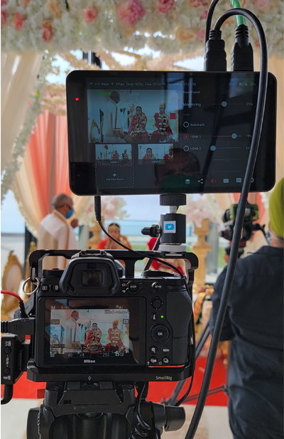 Multi-camera live stream – Our system allows us to produce weddings with multiple camera angles which gives your virtual guests a full view of your wedding, from the wedding party .